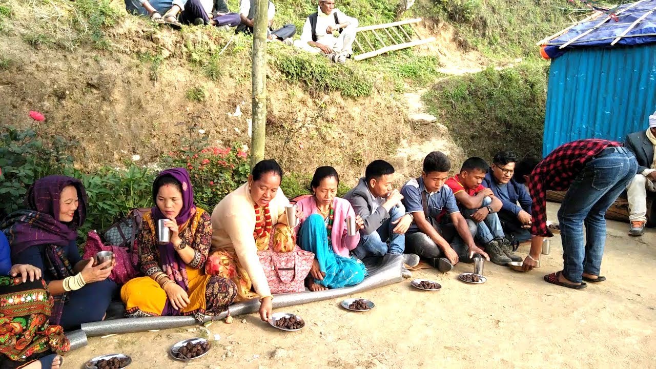 cooking tasty pork meat and eating,tasty pork meat,nepali marriage ceremony,Kiratee Marriage ceremony in Nepal,cooking and eating pork meat in villagesite Nepal,