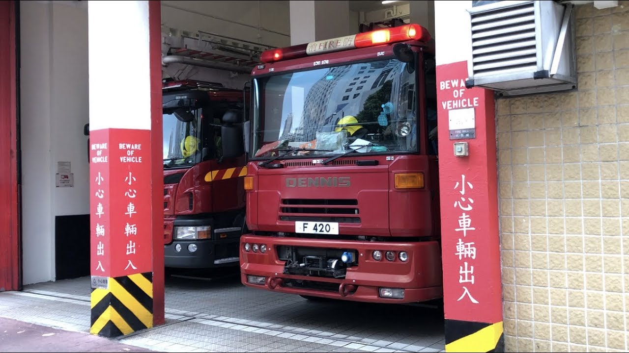 The beauty and elegance of the Dennis Sabre ages well, listen to that engine roar! Yau Ma Tei Fire Station turning out reserve Dennis Sabre MP F420 for person(s) shut in a lift.