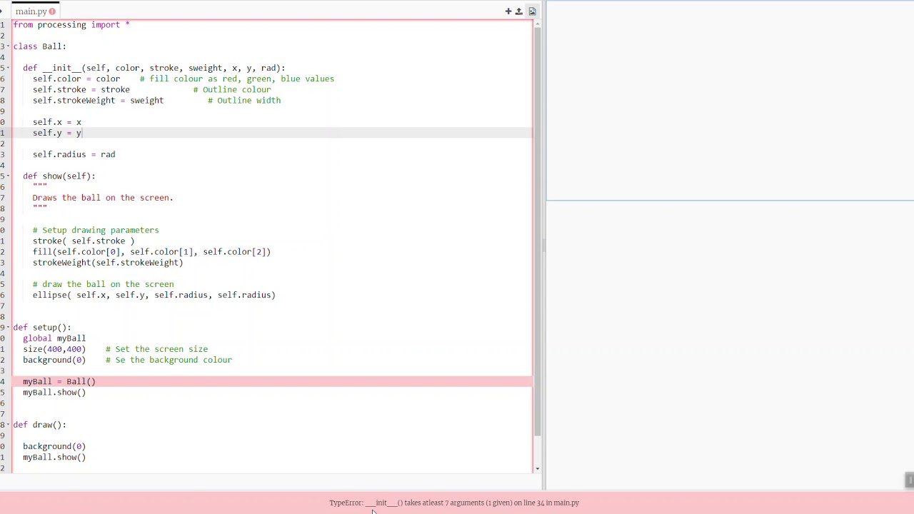 We edit our Ball object class so that it is a more generic class.