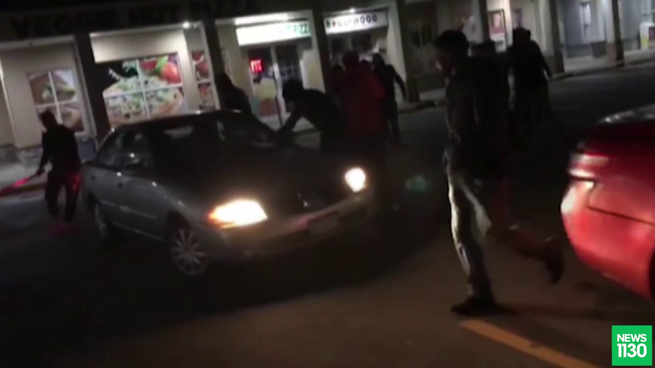 Surrey RCMP are investigating after dramatic video was posted on social media showing a group of armed people attacking a man and hitting multiple vehicles in the parking lot of a strip mall on 128th Street around 2:30 a.m. on Nov. 11.
